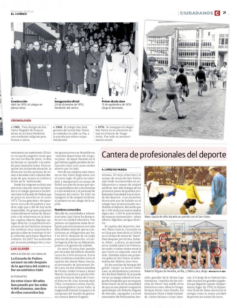 El Colegio San Viator de Gazalbide cumple 51 años en el barrio de Txagorritxu. El edificio con forma de F se inauguró en 1970 para jubilar al antiguo Chami, aquel faro de cultura y fe. Ahora, en 2021, el centro celebra su medio siglo con diversos actos.